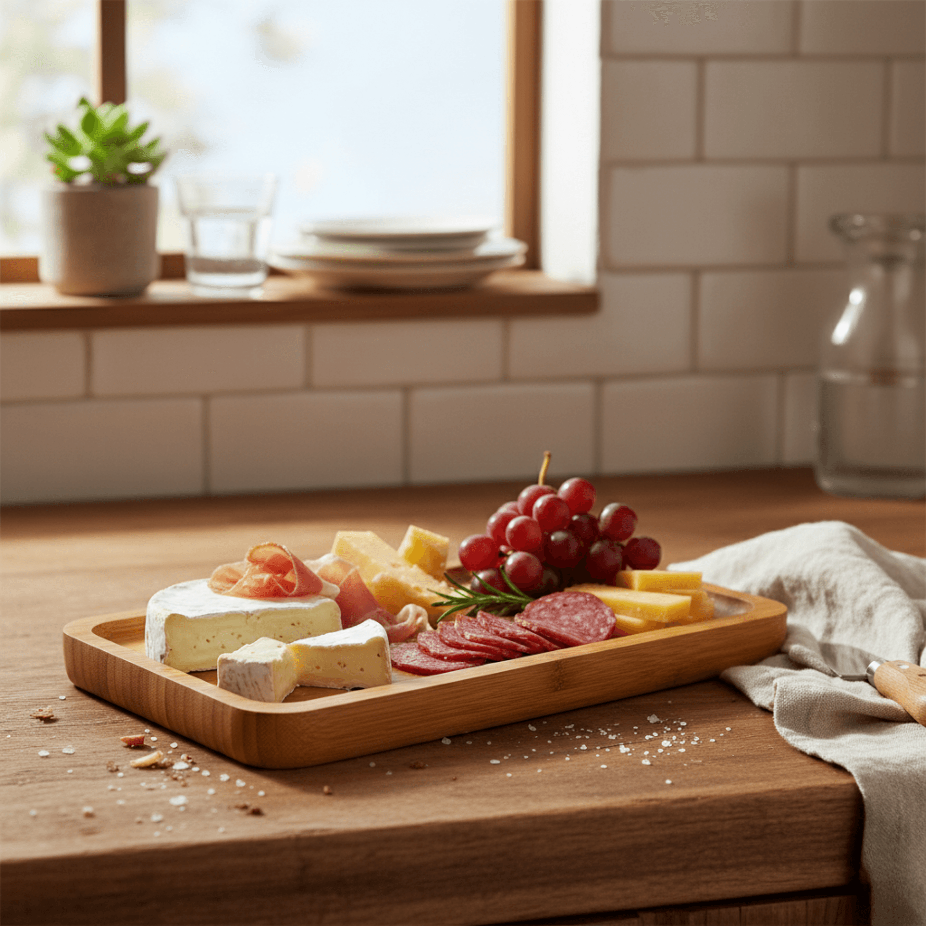 Leve o charme natural do bambu para a sua casa com a Bandeja de Bambu Retangular Lyor. Elegante, versátil e cheia de estilo, ela é perfeita para quem busca unir beleza, praticidade e sustentabilidade em um só produto.