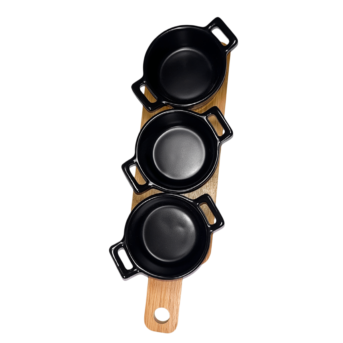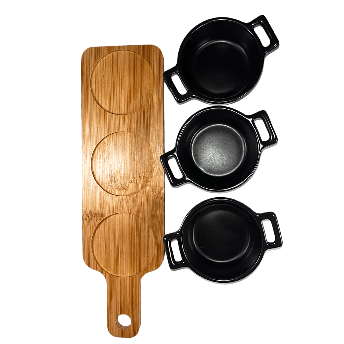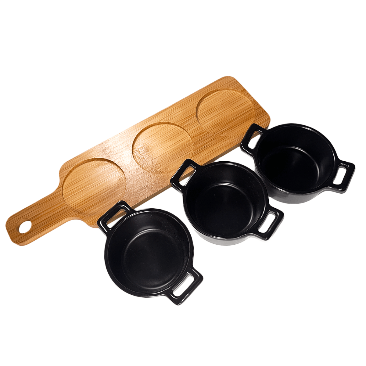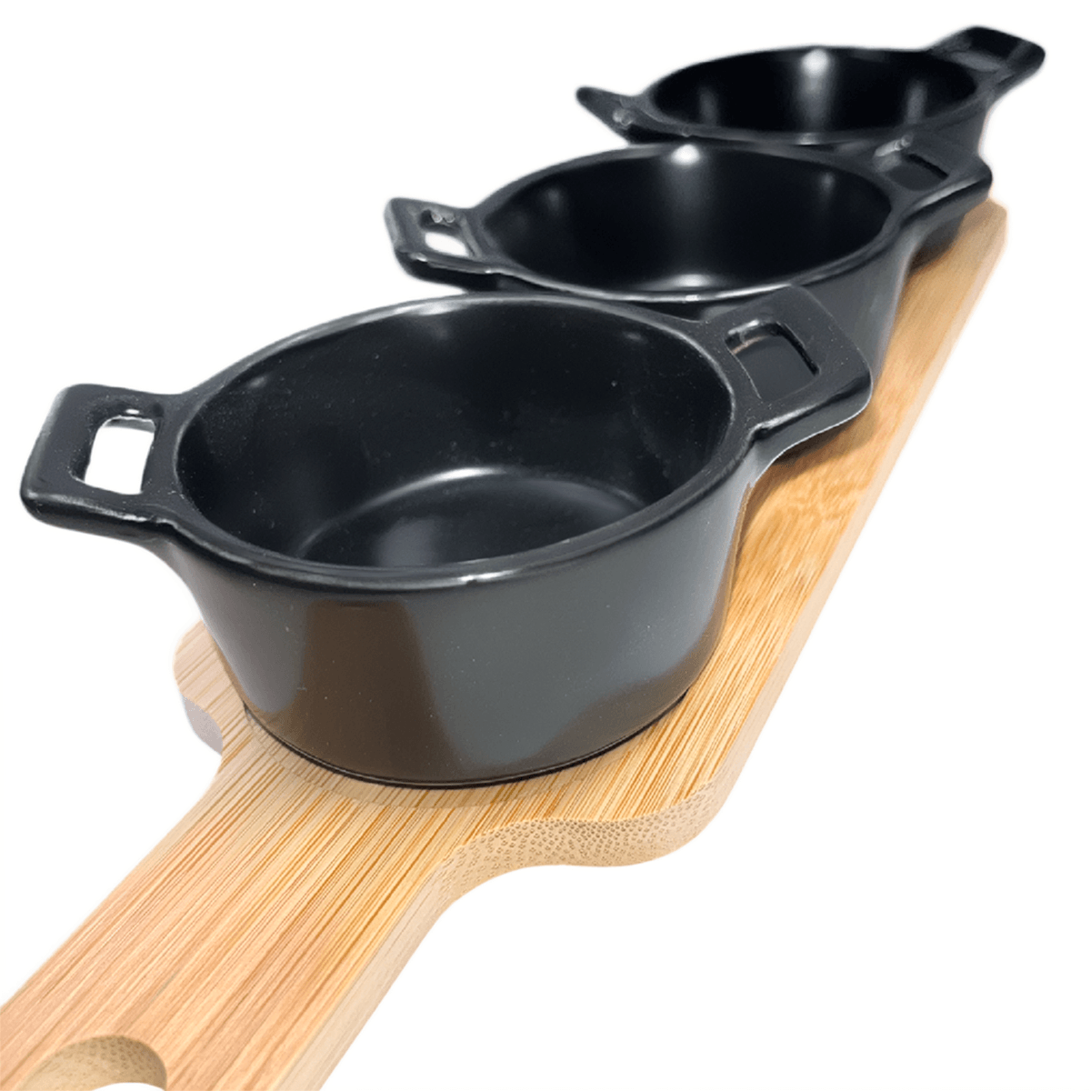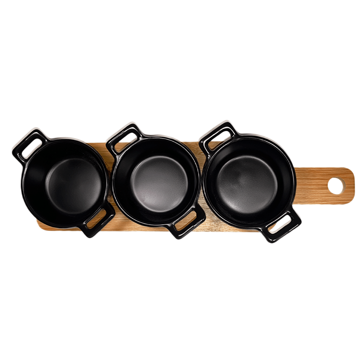 Conjunto Bandeja de Bambu com 3 Petisqueiras Preta – Wolff