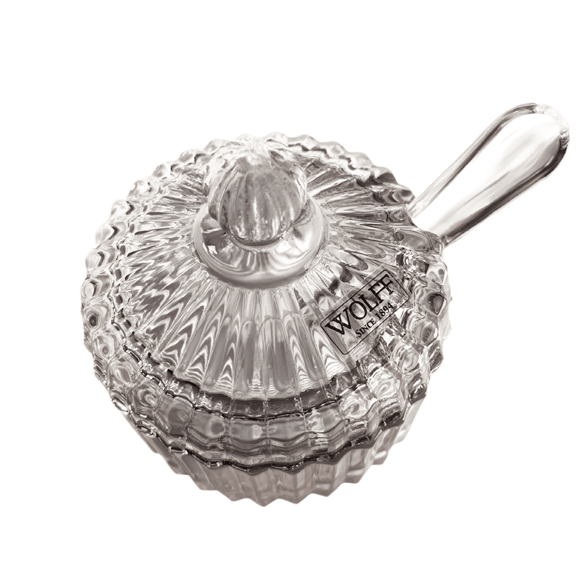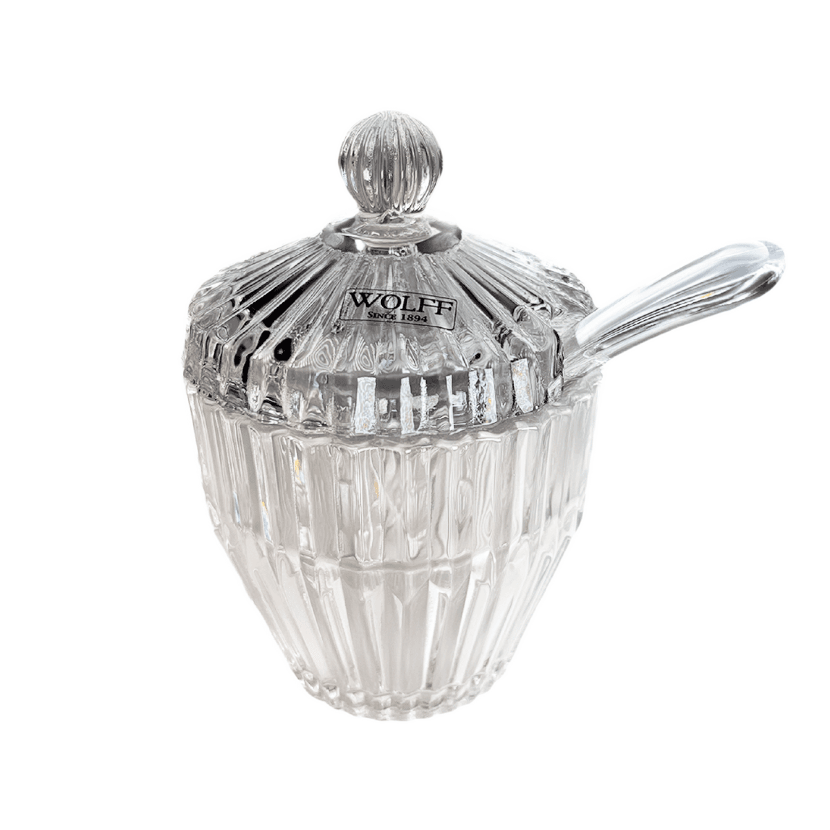 1. Açucareiro de Cristal Império Uma peça que une a clareza do cristal a um design robusto e elegante. Sua tampa funcional protege o conteúdo contra a umidade, mantendo o açúcar sempre fresco.