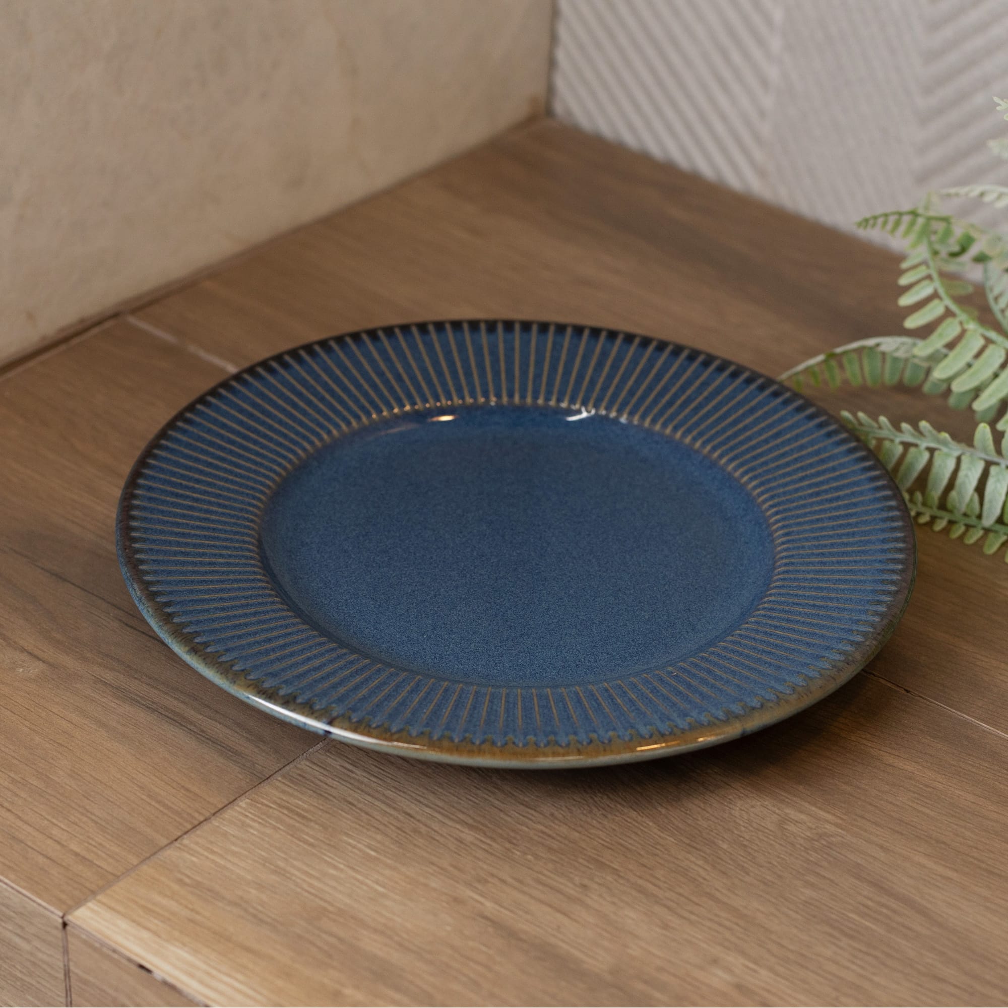 Prato Raso de Cerâmica Linear Azul 27cm